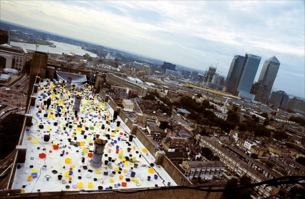 ¿De verdad eso podría pasar en una ciudad como Londres? Una ciudad que asociamos con cierta cantidad de lluvia. ¿Te quedarías sin agua aunque pusieras bastantes recipientes en el tejado? ¿O es solo una necesidad para hacer avanzar la aventura? Obviamente es, ante todo, esto último. Alex Garland, el guionista, necesita sacarlos de ahí. ¿Pero es realista? ¿Se ha pasado Danny Boyle con la cantidad de cacharros para hacer más atractivo el plano? ¿El cesto de lavandería es un chiste o representa la desesperación del personaje?