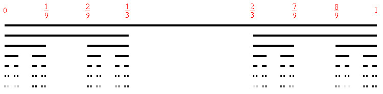 El conjunto de Cantor se construye eliminando repetidamente el tercio central de un intervalo. El resultado es un objeto extraño: contiene infinitos puntos, de hecho tantos como la recta real; no tiene puntos aislados; y es cerrado (contiene a todos sus puntos límite). Y, sin embargo, su longitud total es cero.